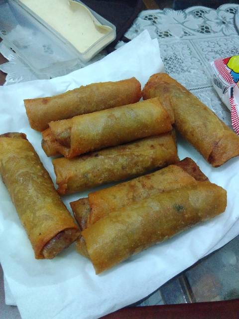 4. Setelah dingin siapkan kulit lumpia. Ambil 1 sendok adonan simpan d atas kulit lumpia nya lalu dgulung sampai seterusnya adonan habis.